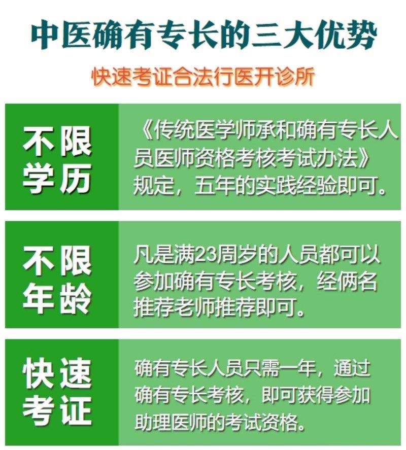 中醫(yī)相關(guān)行業(yè)的從業(yè)者或?qū)χ嗅t(yī)有較深研究的人員,或在醫(yī)療相關(guān)行業(yè)從業(yè)5年以上的人員,依據(jù)國(guó)家《52號(hào)令》可通過(guò)確有專(zhuān)長(zhǎng)的方式,一年時(shí)間快速取得確有專(zhuān)長(zhǎng)證書(shū),實(shí)習(xí)一年后考取主力中醫(yī)師,逐步考取中醫(yī)執(zhí)業(yè)證書(shū)。